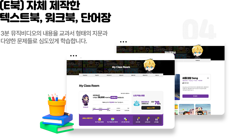 교육 k팝 뮤직비디오 화면과 함께하는 레벨테스트